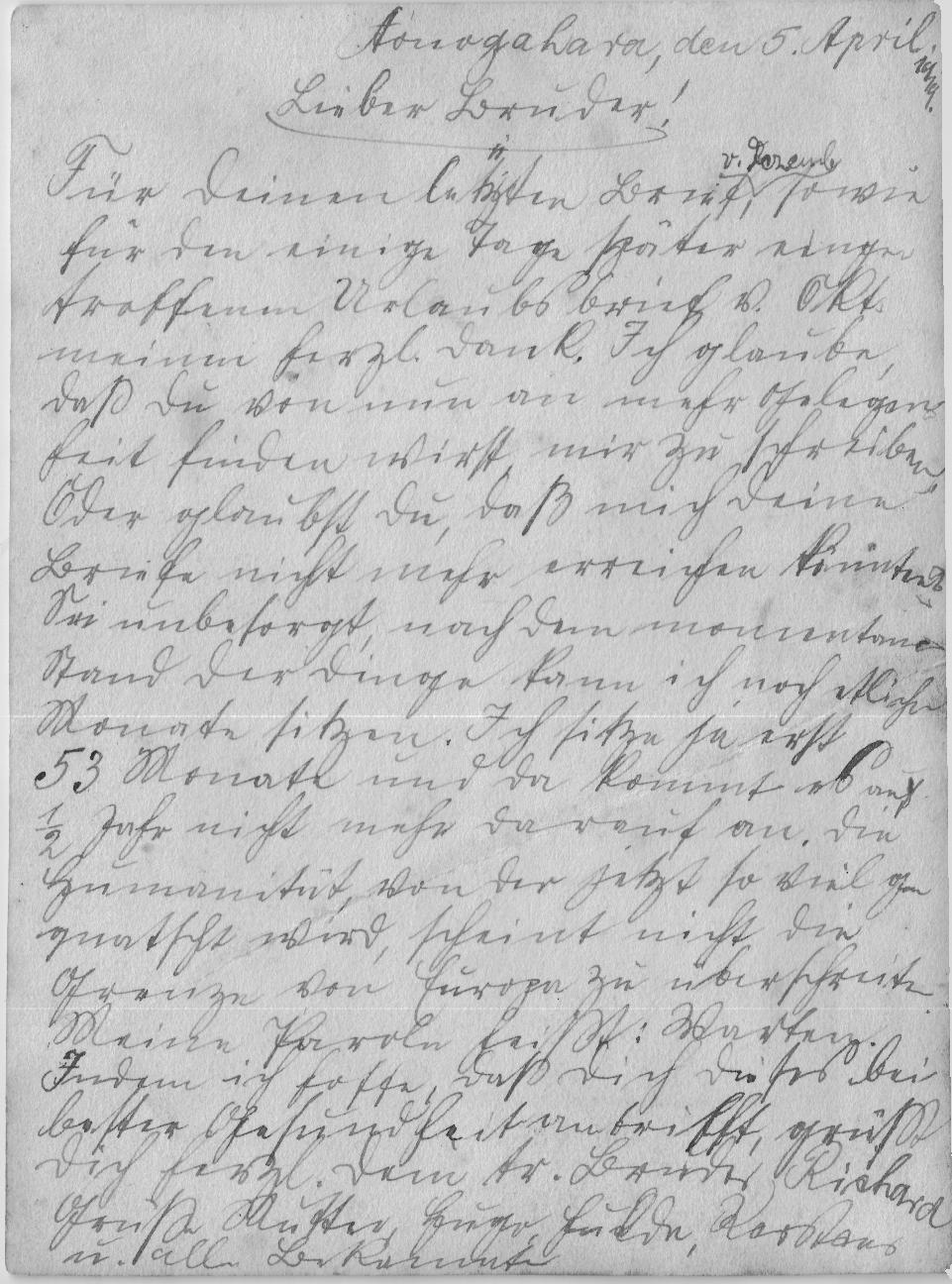 Karte (in Brief eingelegt?) an seinen Bruder (05.04.1919)